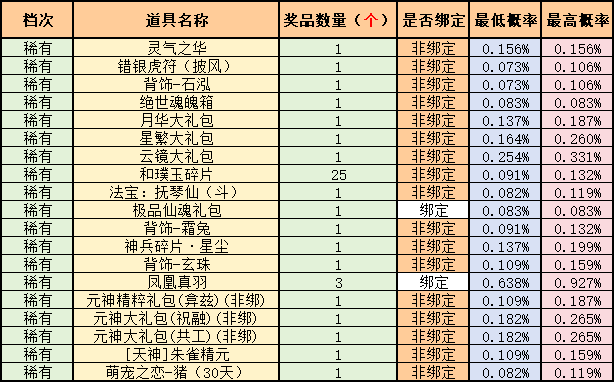 2.本文所示“概率”均是在大样本(大量用户)下的统计数值,与单个玩家的少量测试数据之间可能会存在一定差异。