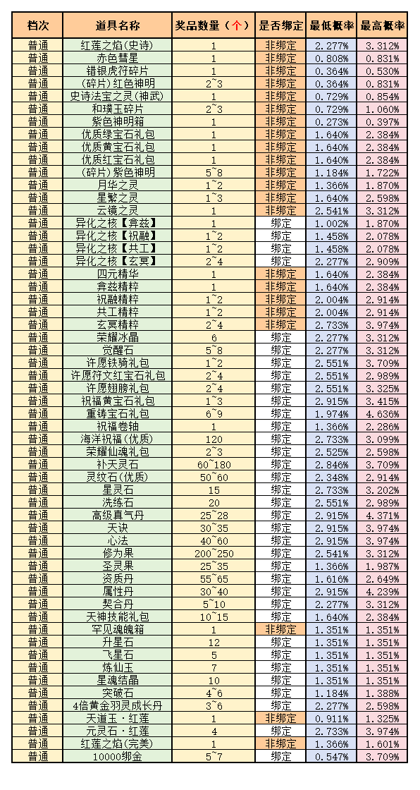 1.每期活动开启时,奖励道具、数量、绑定与否可能存在变动,请以游戏中当期实际道具为准。